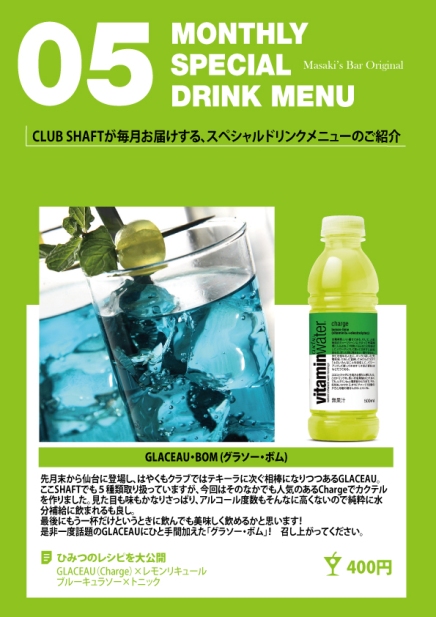 BARマネージャーまさきがお届けしているSHAFTマンスリーお勧めカクテルは!