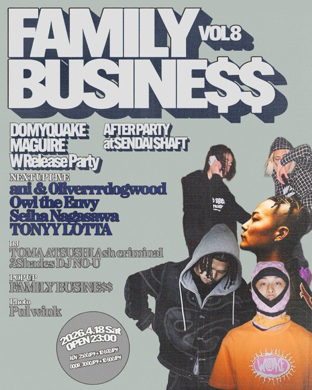 17:00〜21:30 FAMILY BUSINE$$ vol.8 2nd Anniversary DOMYQUAKE & MAGUIRE W Release Party