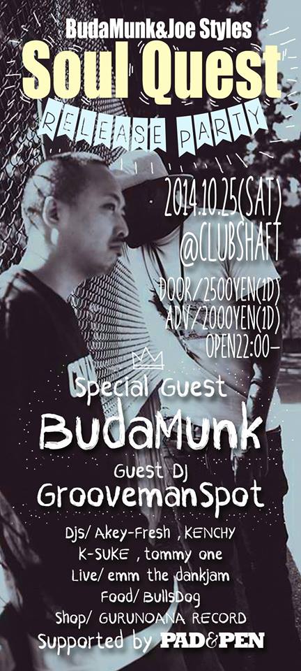 22:00〜 BudaMunk&Joe Styles "SOUL QUEST" RELEASE PARTY