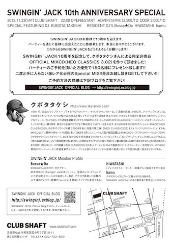 22:00〜 "Swingin' Jack"10th Anniversary Special