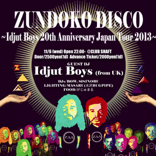 22:00〜 ZUNDOKO DISCO 〜Idjut Boys 20th Anniversary Japan Tour 2013〜