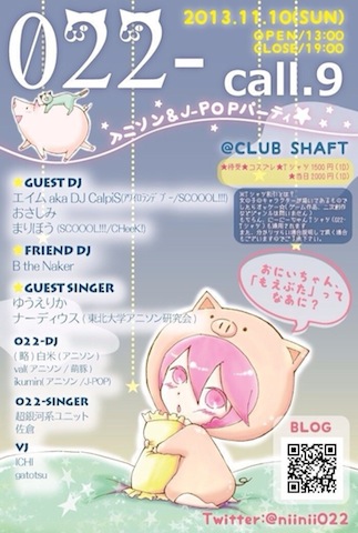 13:00〜19:00 022-call.9 アニソン&J-POPパーティ