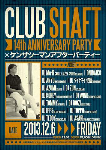 22:00〜 CLUB SHAFT 14th anniversary party × ケンザツーマンアフターパーティー
