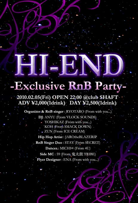 22:00〜 HI-END ~Exclusive RnB Party~