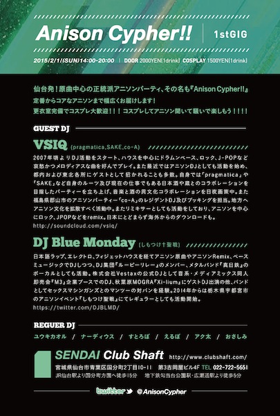 13:30〜 Anison Cypher!! 1stGIG