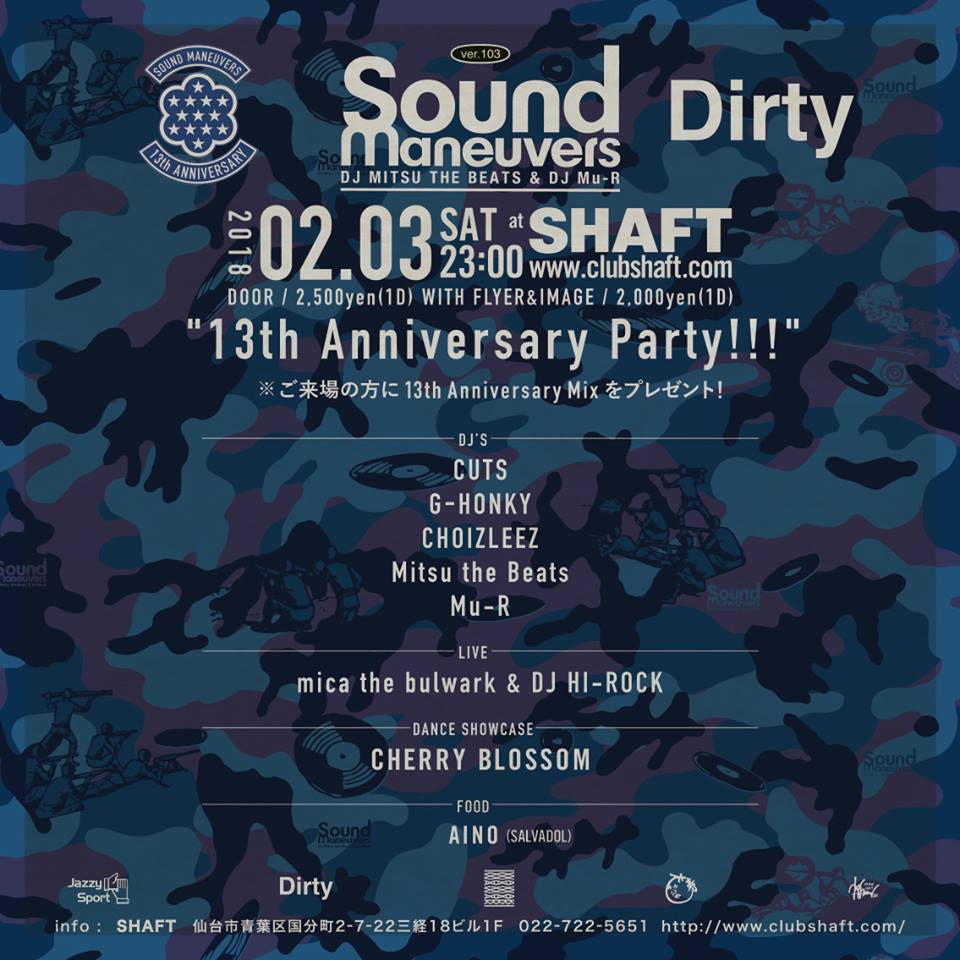 23:00〜 SOUND MANEUVERS ver.103 × DIRTY "13th Anniversary Party!!!"
