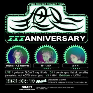 22:00〜 GNA ”GURUNOANA”ENTRANCE / TICKET LIMITED 50 ADV 1500jpy+1D600jpy DOOR 2000jpy+1D600jpy