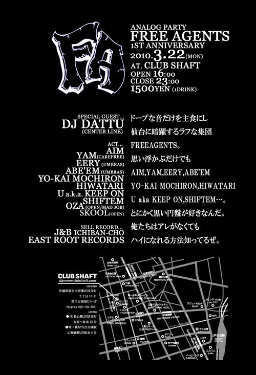 16:00〜 FREE AGENTS 1st ANNIVERSARY