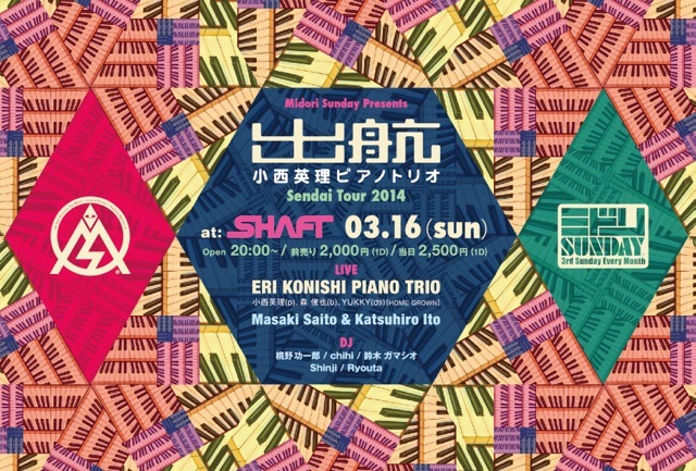 20:00〜 ミドリSUNDAY Presents 小西英理ピアノトリオ Sendai Tour 『出航』