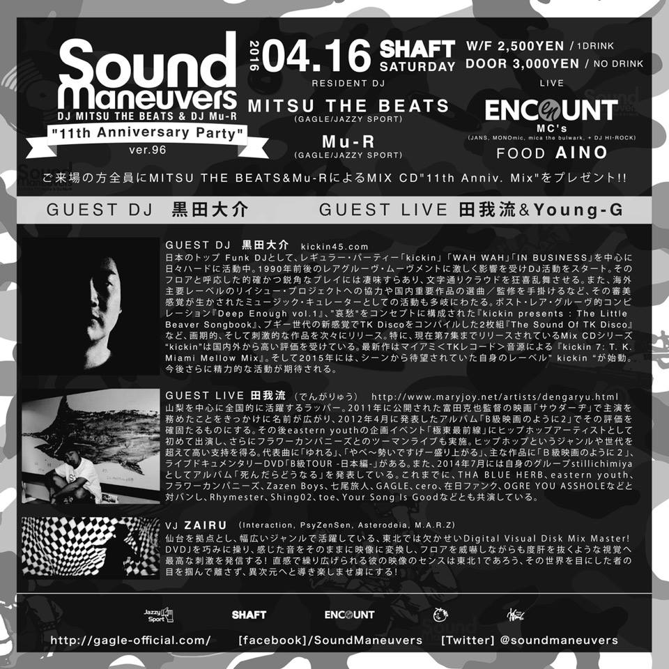 23:00〜 SOUND MANEUVERS ver.96 "11th Anniversary Party" GENRE/HIPHOP,ALL GOOD MUSIC