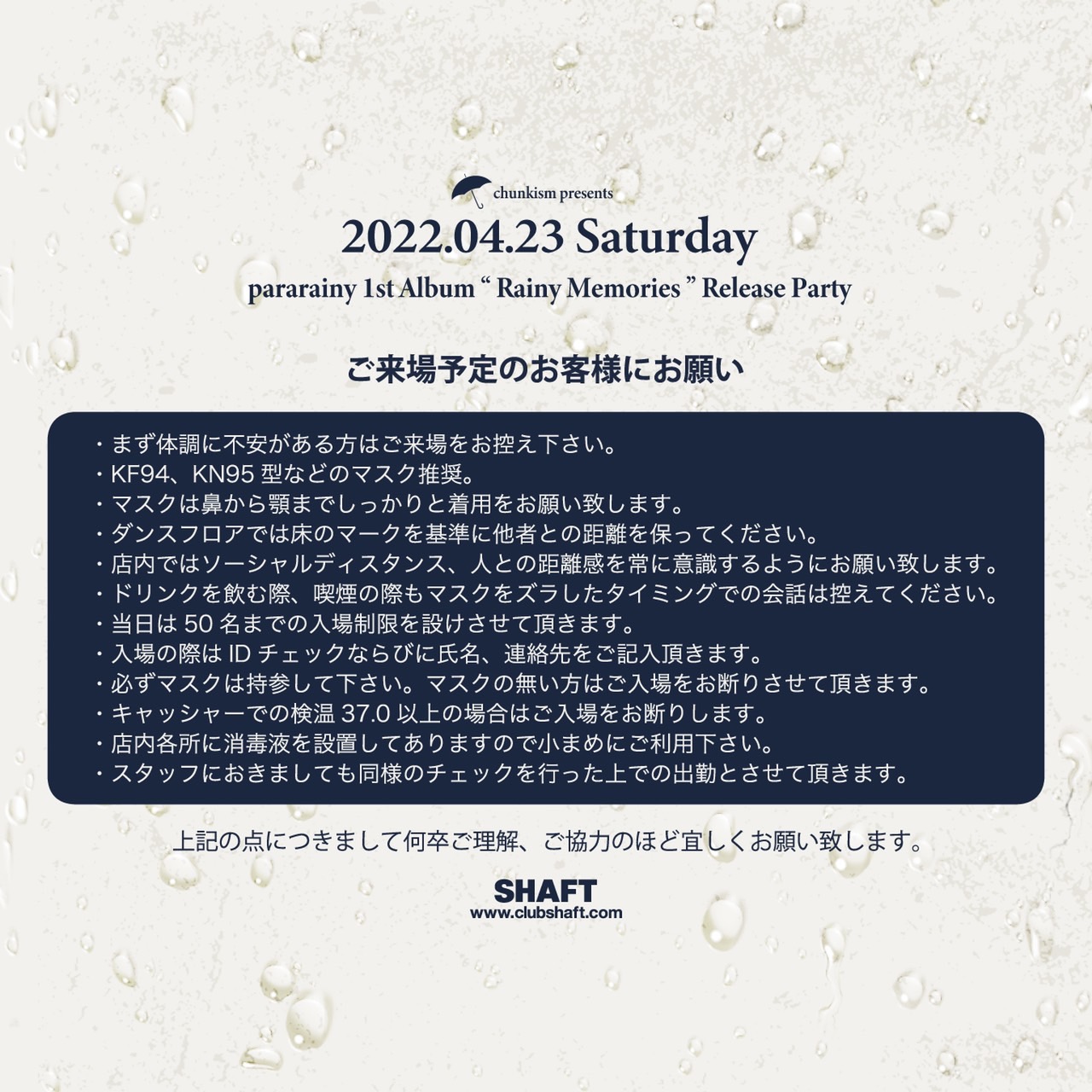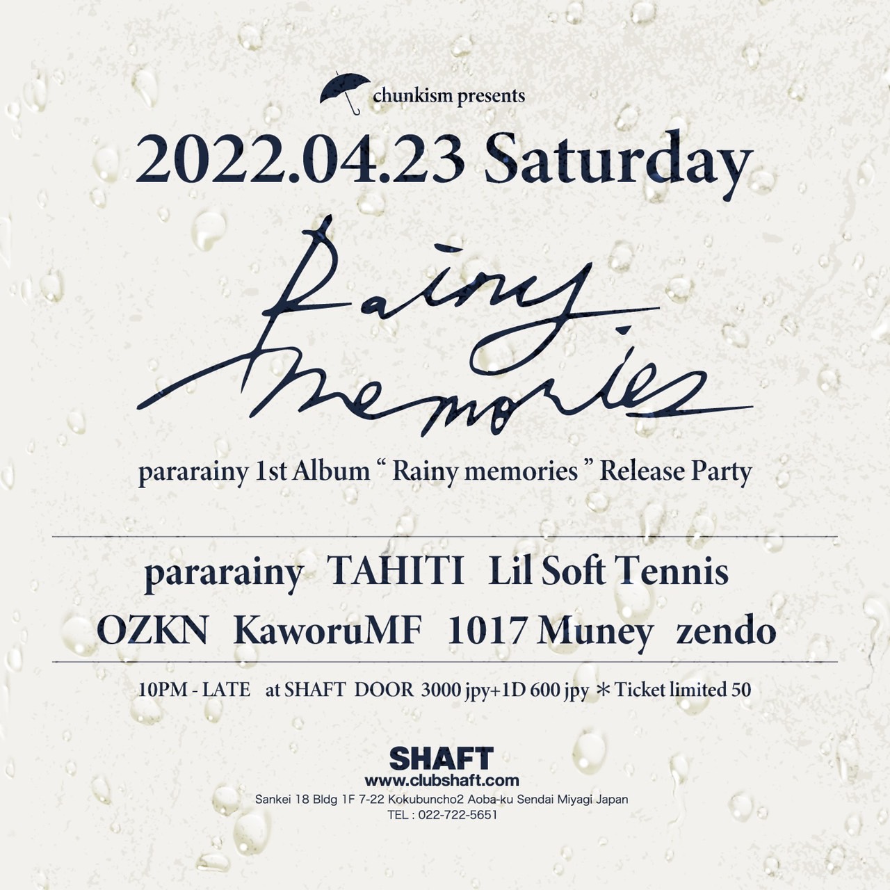 22:00〜 chunkism presents pararainy 1st Album"Rainy Memories"Release Party