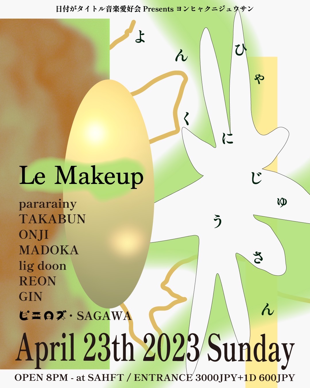 20:00〜 日付けがタイトル音楽愛好会 Presents よんひゃくにじゅうさん-423