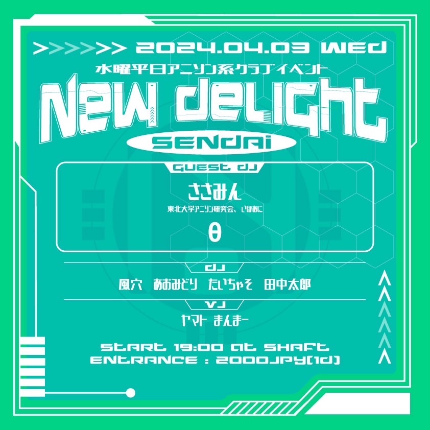19:00〜 New Delight Sendai〜にゅーでら〜