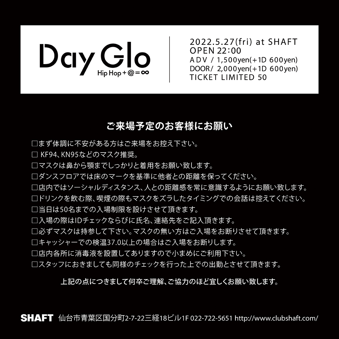 22:00〜 Day Glo Hip Hop + @ = ∞