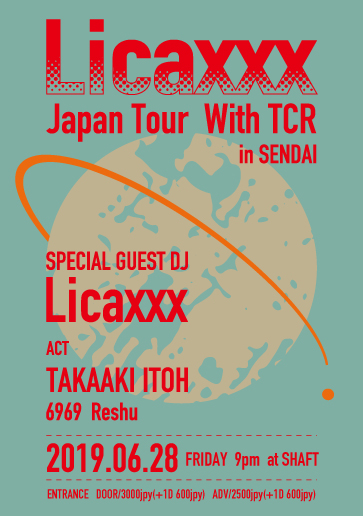 DOOR / 3,000yen(+1D 600yen) WITH FLYER / 2,500yen(+1D 600yen) (フライヤー画像提示でもOK)