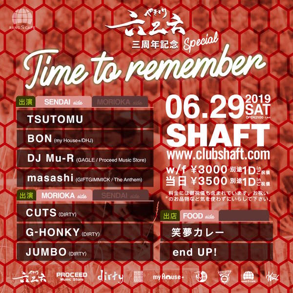 info : SHAFT 仙台市青葉区国分町2-7-22三経18ビル1F 022-722-5651 http://www.clubshaft.com/ |