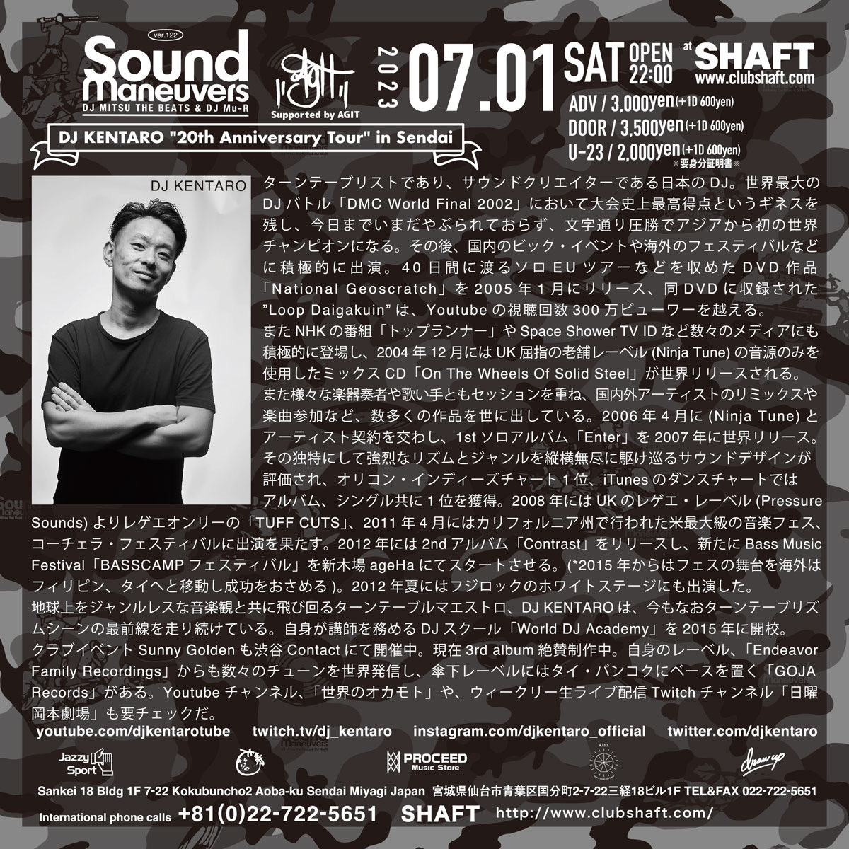 22:00〜 SOUND MANEUVERS ver.122 [DJ KENTARO "20th Anniversary Tour” in Sendai] Supported by AGIT