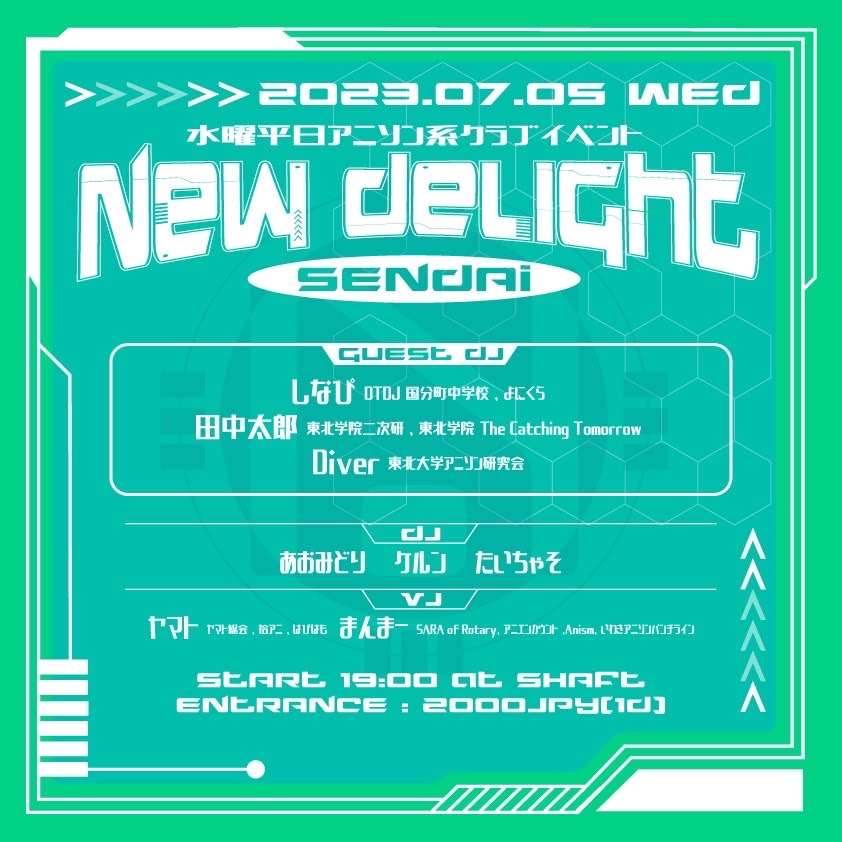 19:00〜 New Delight Sendai〜にゅーでら〜