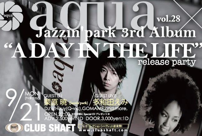 22:00〜 aqua vol.28×Jazzin'park 3rd Album 「A DAY IN THE LIFE」release party
