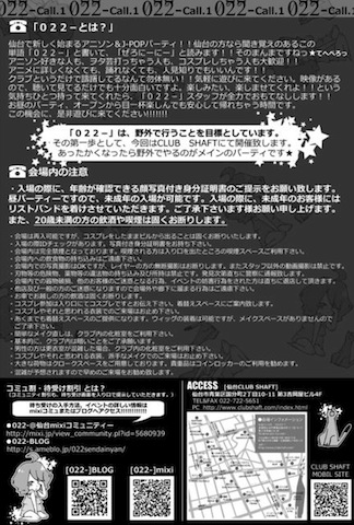 What's COOKLESS?≫ それは、2000年から始まった冒険・・・ 調理不要な仙台老舗ClubEvent=COOKLESS。 オリジナルCandle(SHARE)とメンバーからジャンルレスにシュートされるMUSIXでGOOD&CHILLな素敵空間を提供。 10周年の節目を経て、11年目の今年、場所も装いも新たにリボーン。 新たなメンバーとフレイバーをM&R、さらにアスレチックにチルチルだけどもびしっとナイススペース。 ますます収拾のつかない選曲をヘンプの網が優しく包み、キャンドルがピースに照らし出す。