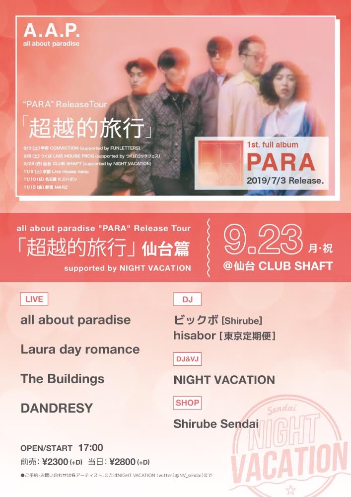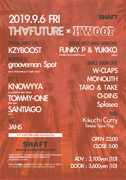 DOOR / 3,000yen(+1D 600yen) WITH FLYER / 2,500yen(+1D 600yen) (フライヤー画像提示でもOK)