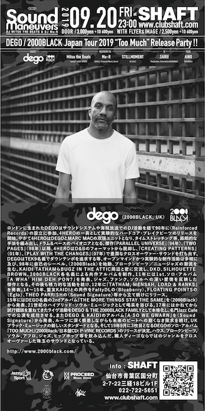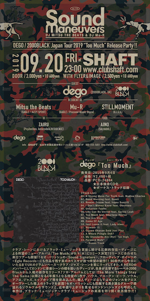 23:00〜 SOUND MANEUVERS ver.110 DEGO / 2000BLACK Japan Tour 2019 “Too Much” Release Party!!GENRE/HIPHOP,HOUSE,ALL GOOD MUSIC