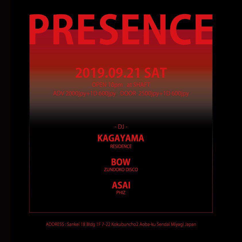 info : SHAFT 仙台市青葉区国分町2-7-22三経18ビル1F 022-722-5651 http://www.clubshaft.com/