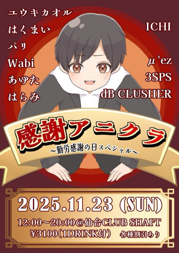 12:00〜 感謝アニクラ〜勤労感謝の日スペシャル〜