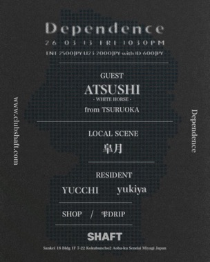 22:30〜 DependenceENTRANCE DOOR 2500jpy+1D600jpy U23 2000jpy+1D600jpy