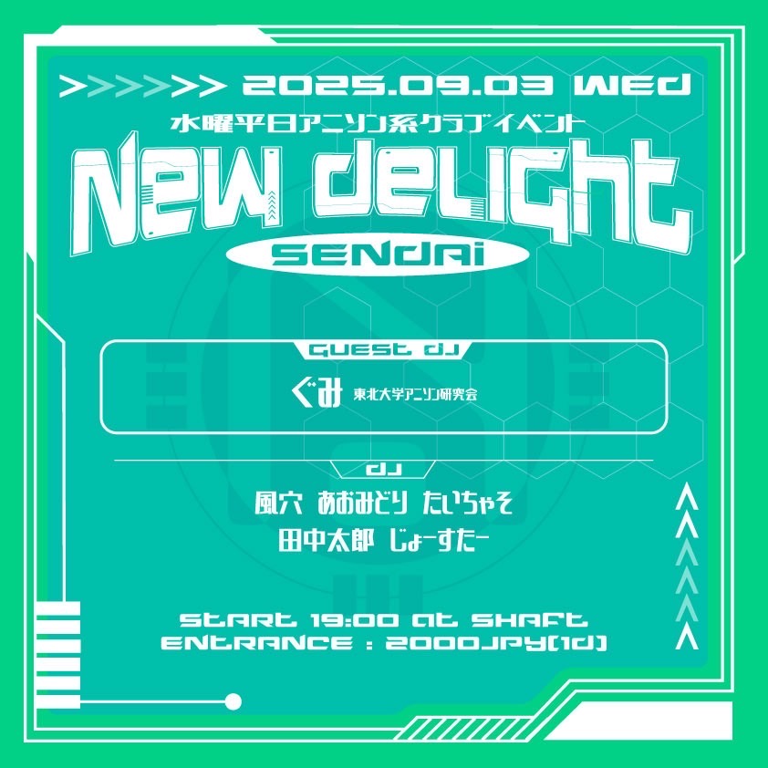 [9/6 - 9/19 23:59] エントリー費 1人 4,000yen +1drink 600yen